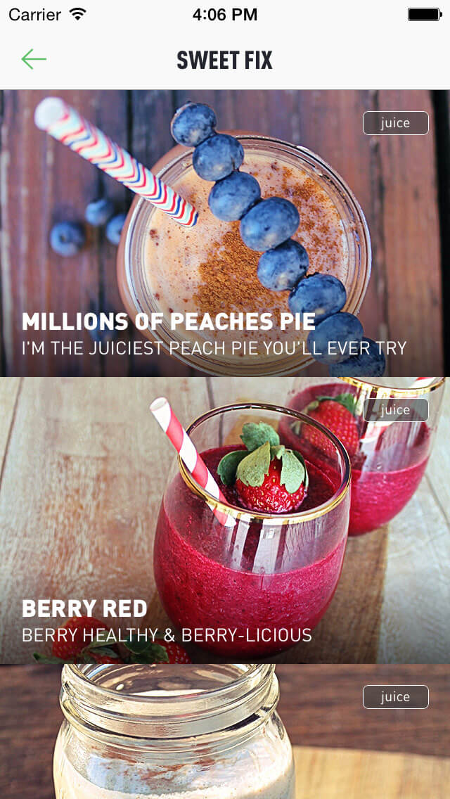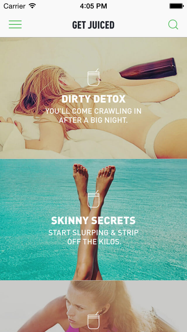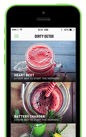 Select from 6 categories based on your desired results. Dirty Detox, Skinny Secrets, Fiery Boost, Babe Beauty, Sweet Fix, Health Kick